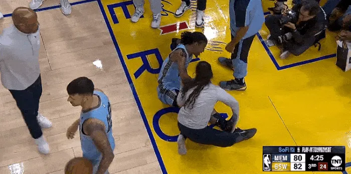 第三節比賽中 ,莫蘭特跳投命中打成2+1落地時崴腳扭傷,堅持完成罰球后被換下場 。